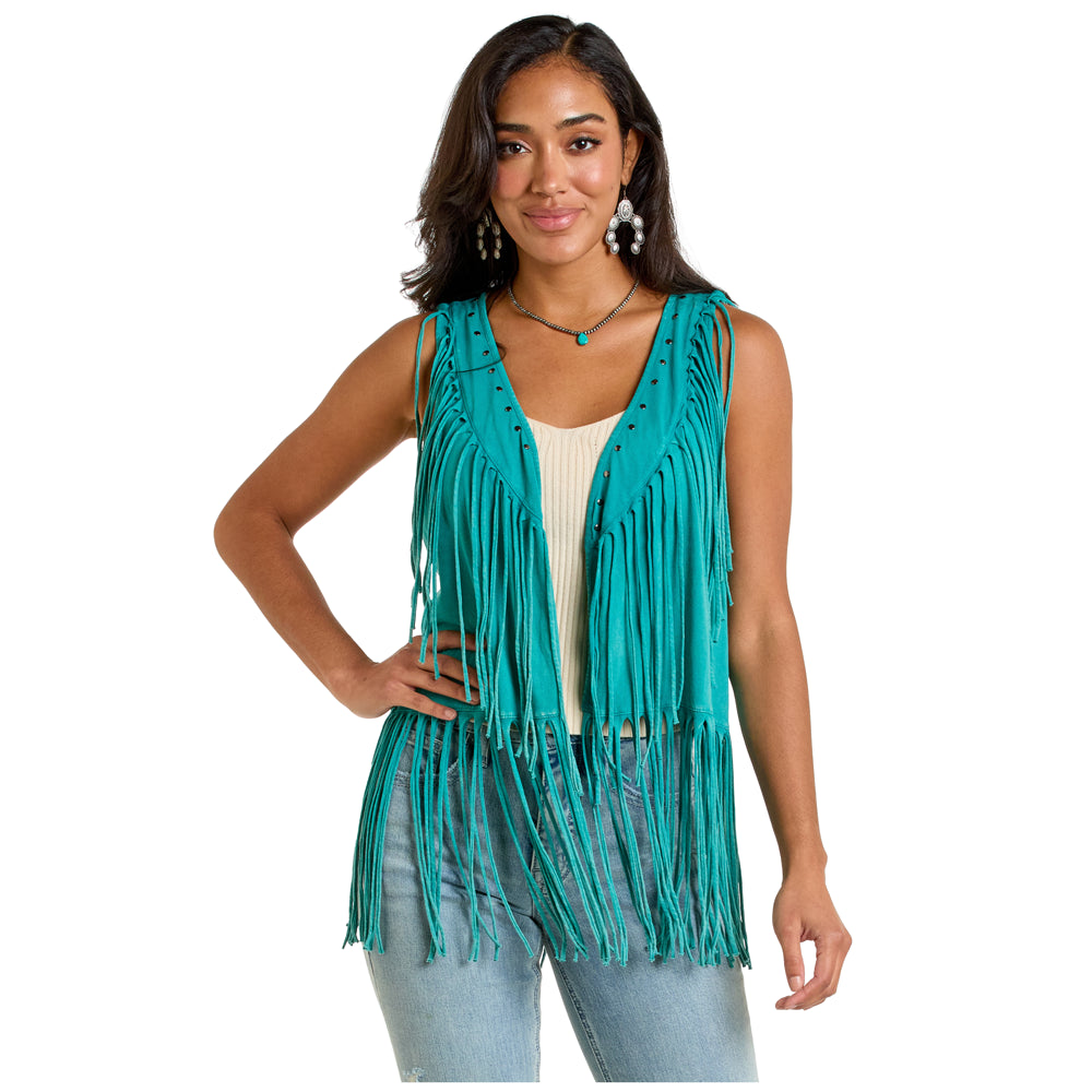 Cripple Creek Women's Studded Fringe Microsuede Vest in Beige Women's Western vest Studded on the shoulders Long fringe...