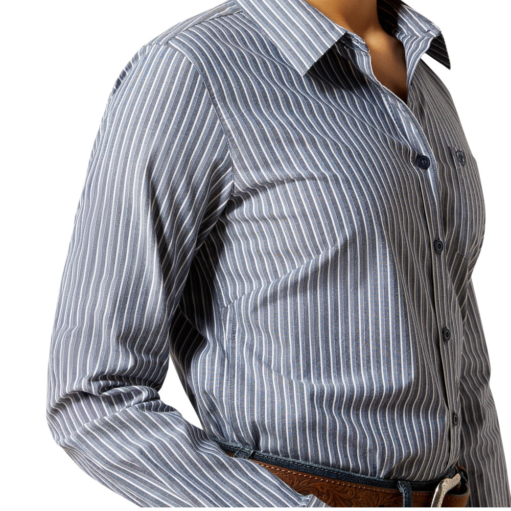 10065840 Ariat Women's Kirby Stretch Long Sleeve Button Shirt - Dress Blue Stripe