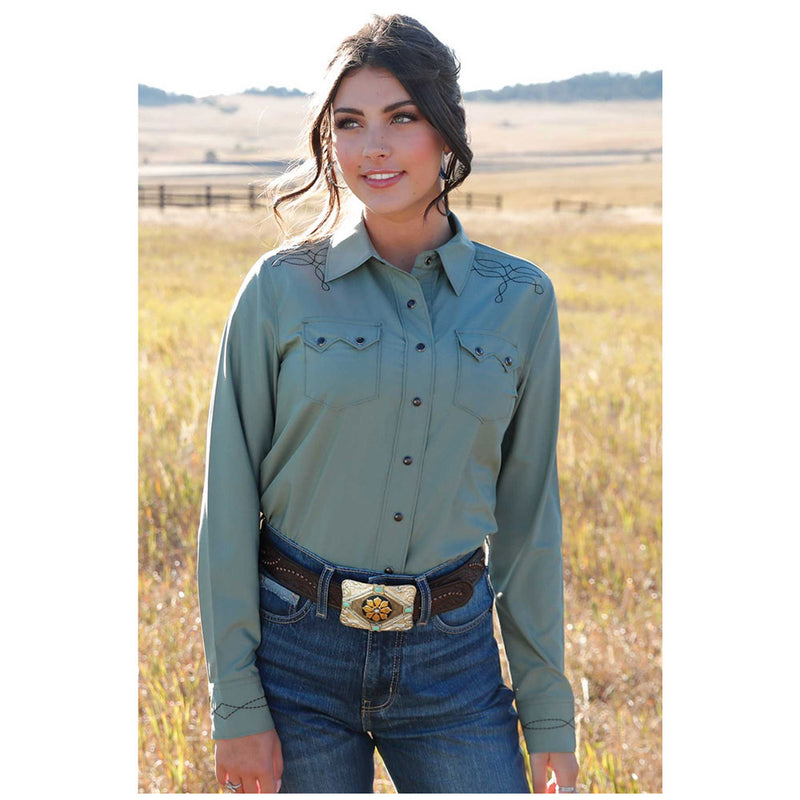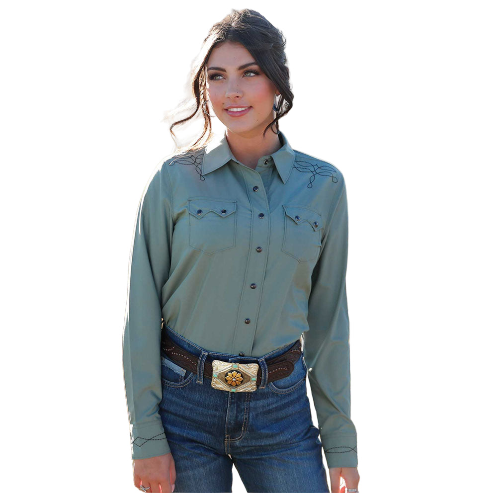 CTW7501002 Cruel Girl Women's Long Sleeve Western Embroidered Snap Shirt - Green