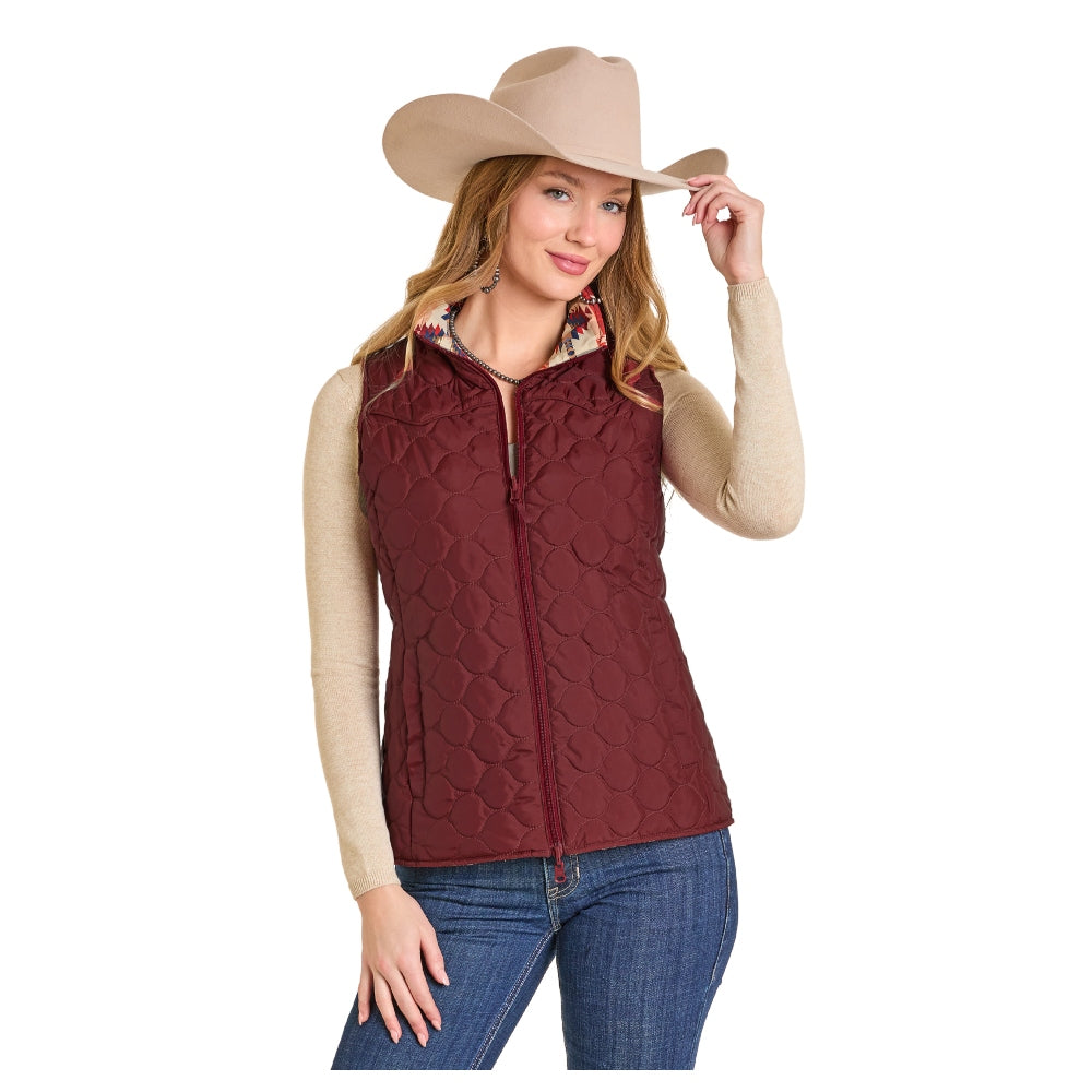 DW98C06847 Panhandle Slim Powder River Outfitters Women's Reversible Quilted Vest