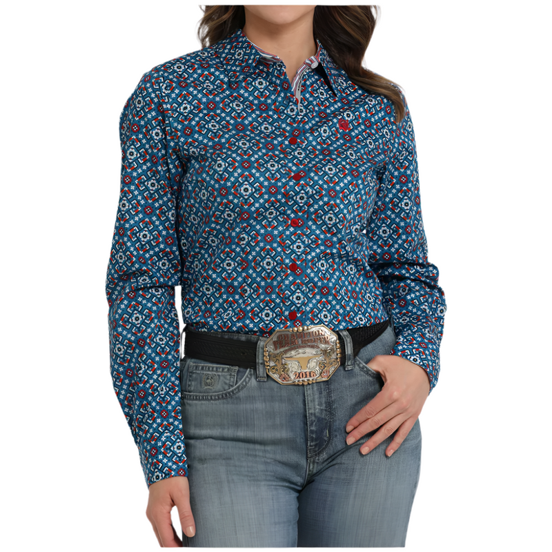 Cinch Women's Long Sleeve Blue Print Western Button Up Shirt