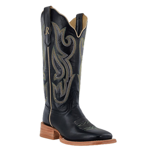 RWL8300-2 R. Watson Women's Ebony Calf Wide Square Toe Cowboy Boot