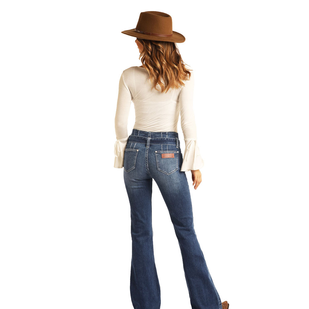 Rock & Roll Denim Women's High Rise Trouser Jean Ladies trouser jean High rise Slit Rear Pockets Dark...