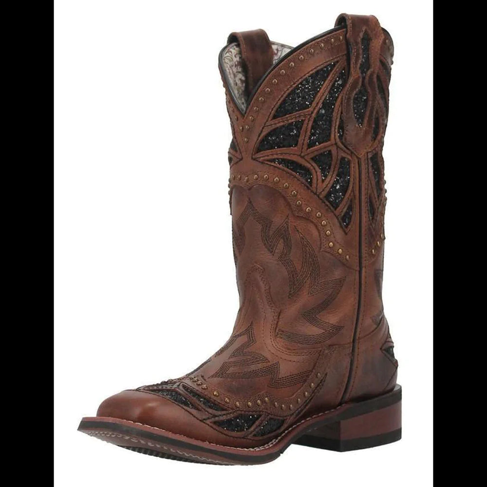 Laredo Women's Dream Weaver Leather Cowboy Boot in Brown Ladies Western boot Leather Broad square toe 1" Stockman...