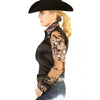 70266 RHC Women's Black Taffeta Show Shirt with Black Sheer Lace Embroidered Sleeves