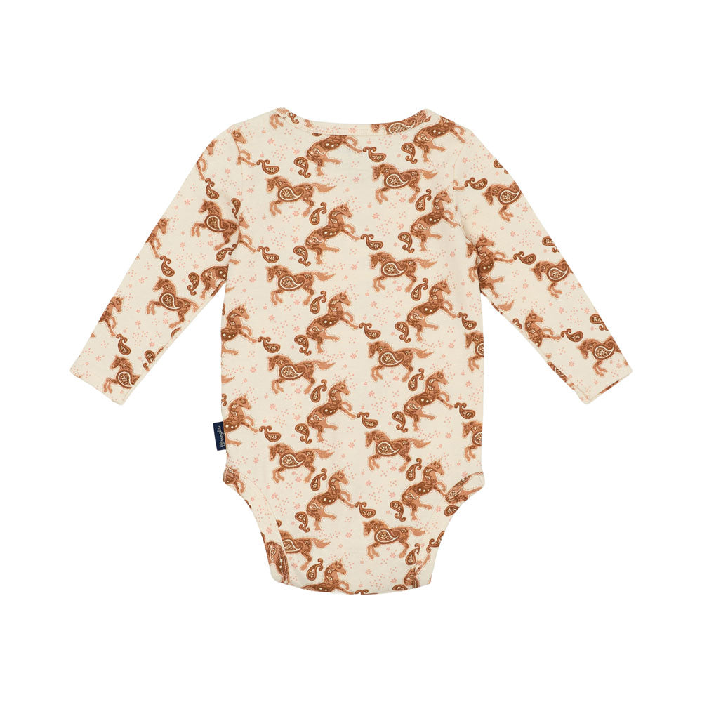 Wrangler Baby Girl Long Sleeve Bodysuit with Brown & Pink Paisley Pony Print