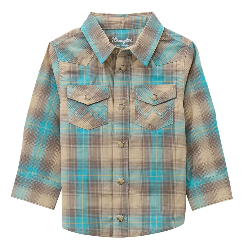 112369522 Wrangler Boys' Retro Long Sleeve Snap Shirt - Tan/Turquoise