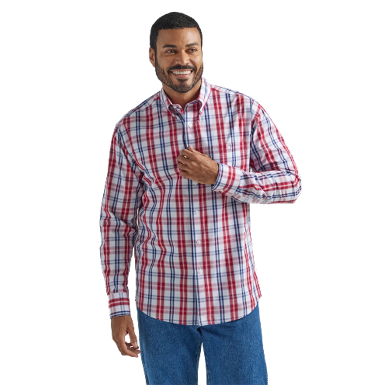 Wrangler Men's Relaxed Fit Button Down Long Sleeve Shirt- Blue Red Plaid