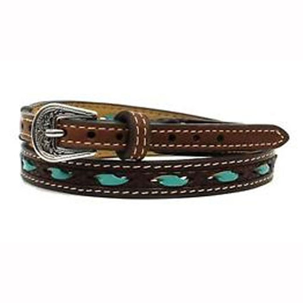 0204602 1/2 Inch Leather Hatband with Turquoise Rawhide Lacing