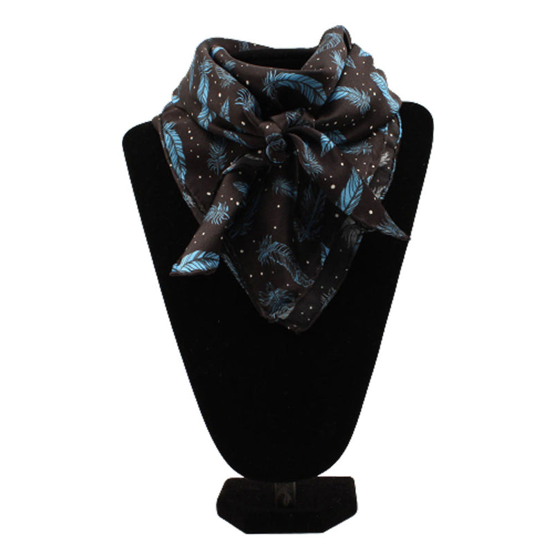 0905603 M&F Silk Blue & Black Feather Print Wild Rag