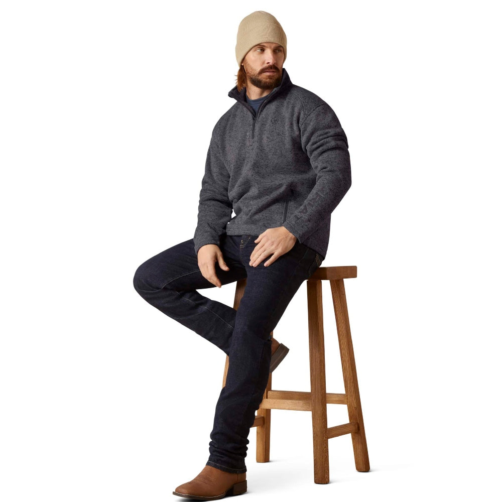 10073711 Ariat Men's Caldwell Logo 1/4 Zip Sweater - Grey