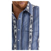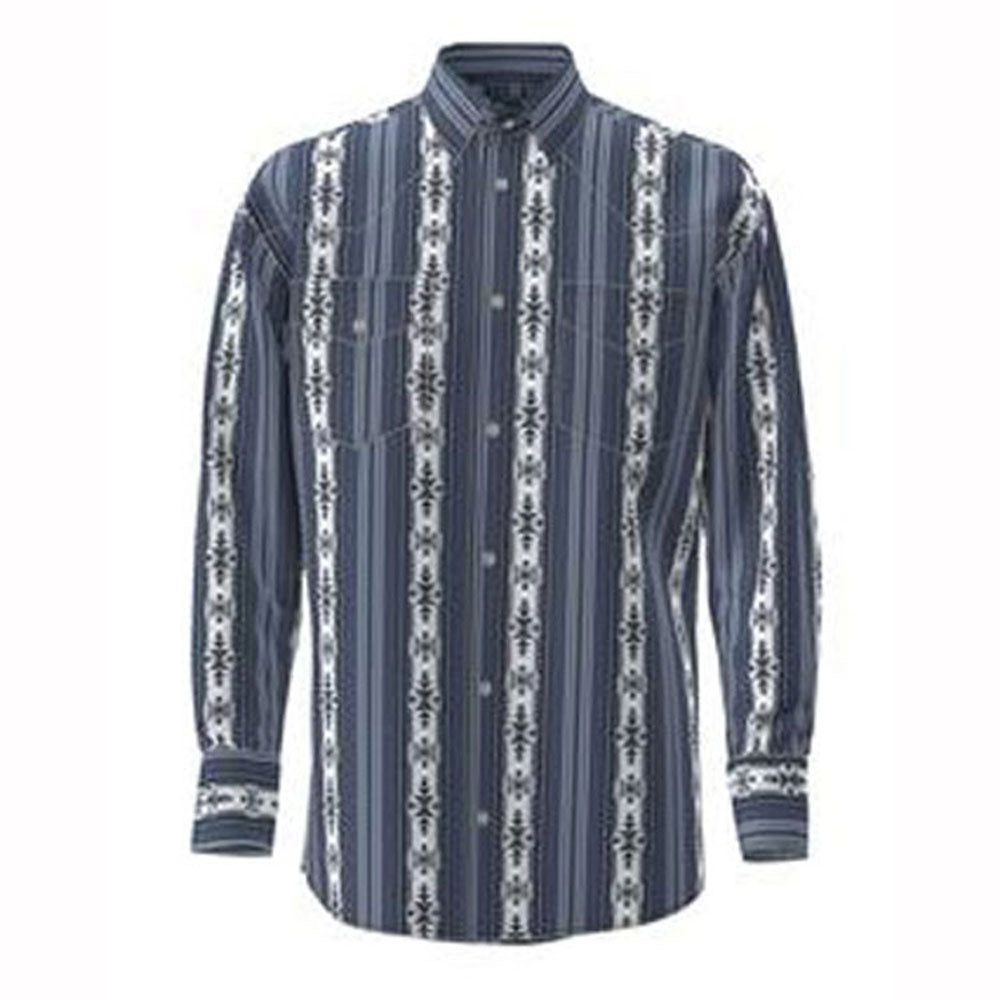Wrangler Men's Checotah Dress Western Long Sleeve Shirt - Navy Stripe with Southwest Print