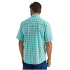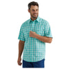 Wrangler Men's Wrinkle Resist Short Sleeve Classic Fit Shirt in Racing Turquoise Plaid