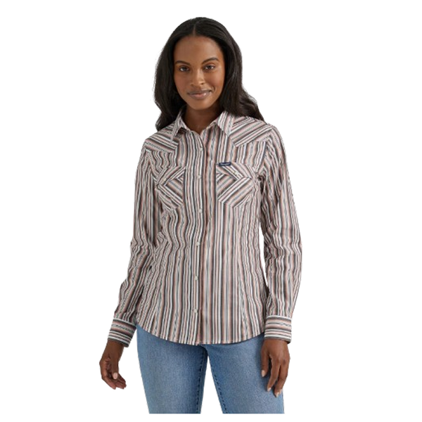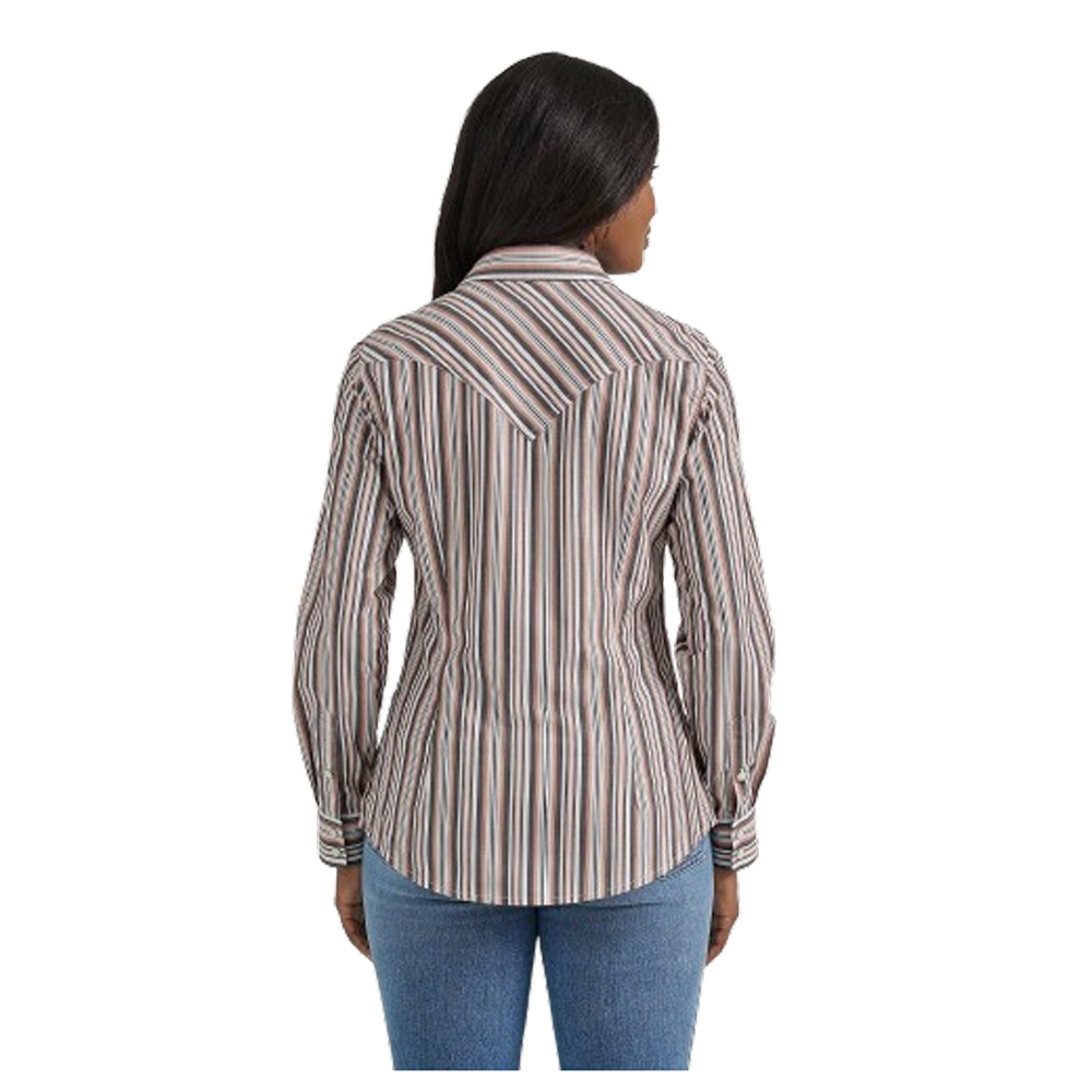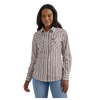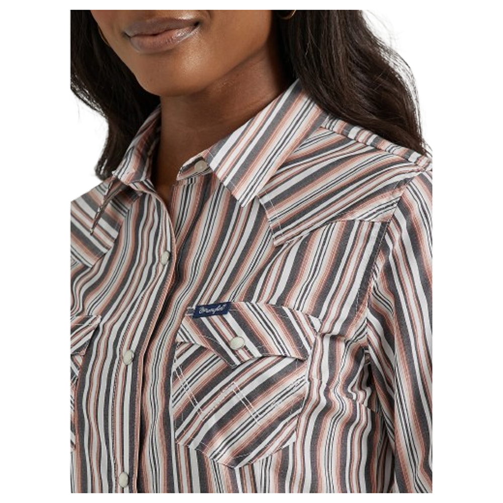 Wrangler Women's Metallic Stripe Slim Western Snap Shirt in Pink Grey