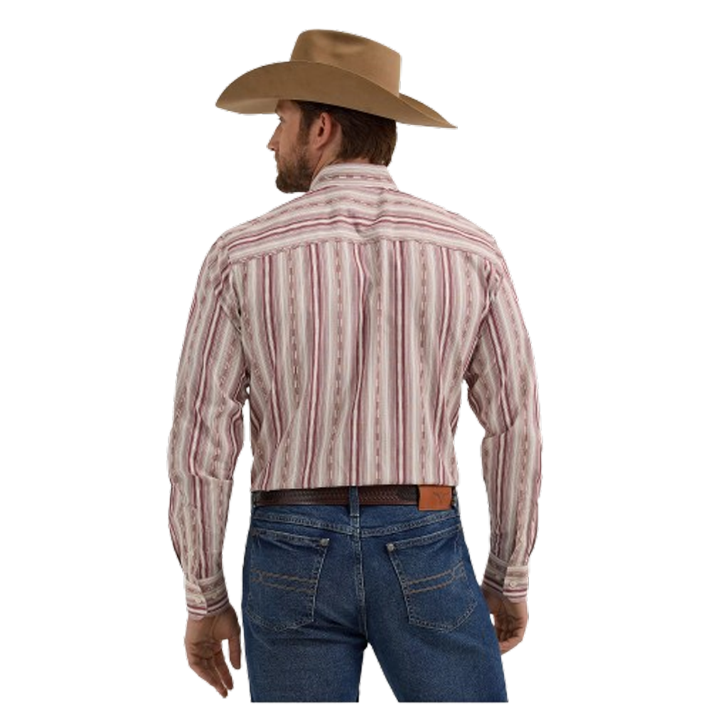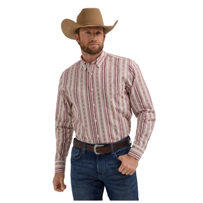 Wrangler® X Cody Johnson Men's Long Sleeve Classic Fit Shirt in Burgundy Stripe