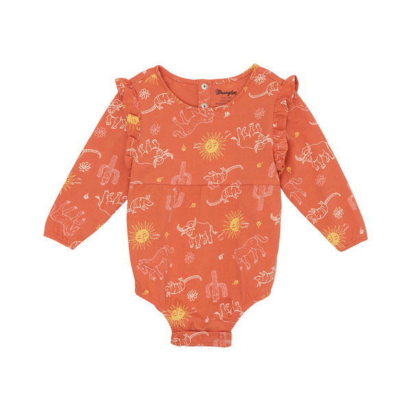 112359423 Wrangler Baby Girl Long Sleeve Bodysuit - Coral