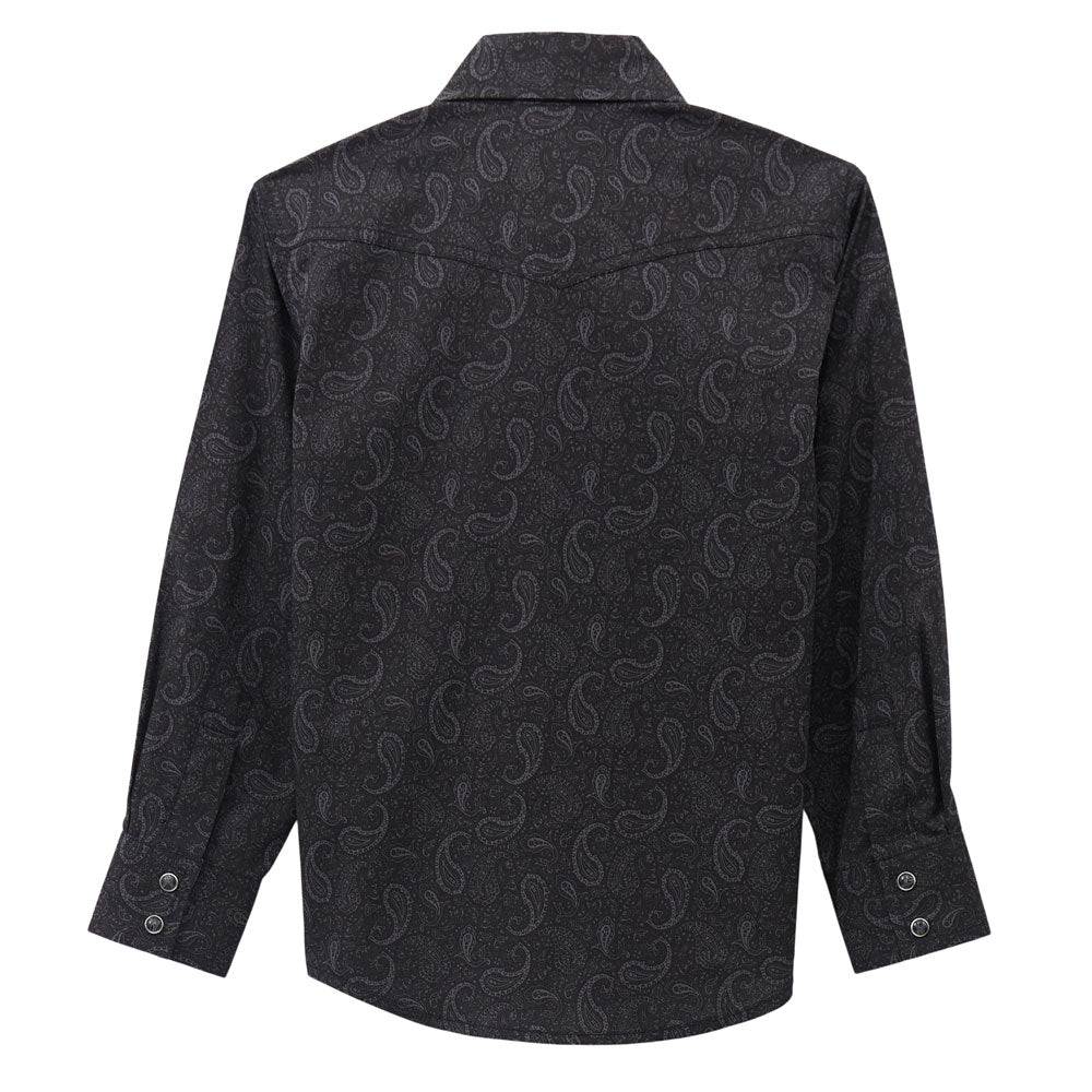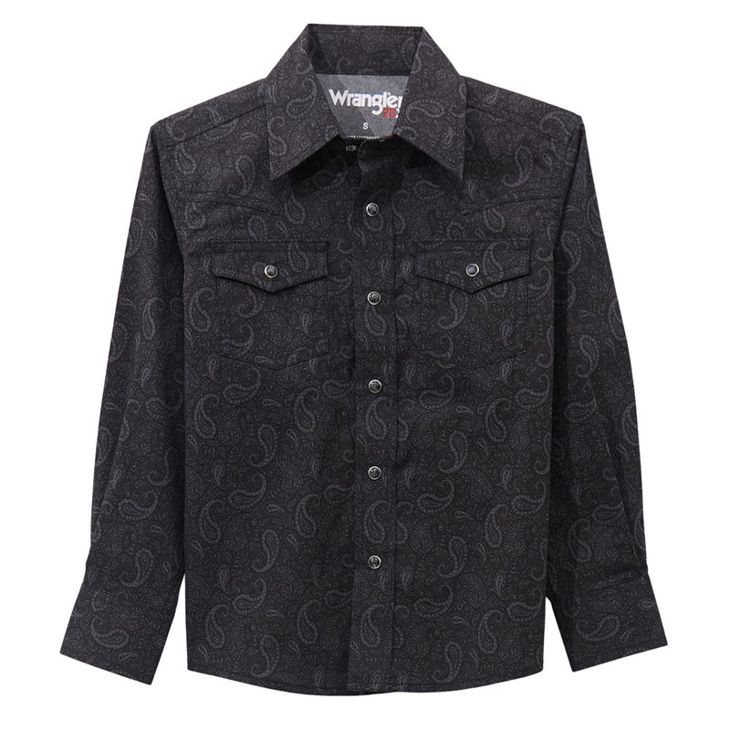Wrangler Boys 20X Advanced Comfort Long Sleeve Shirt in a Black Paisley Print