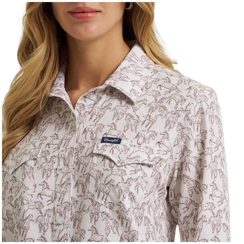 112375045 Wrangler Women's Performance Aria Long Sleeve Shirt - White