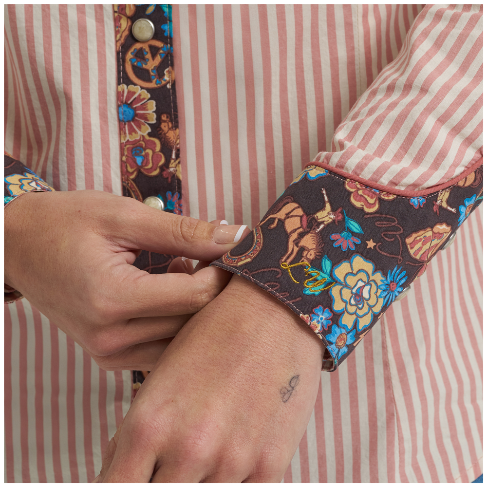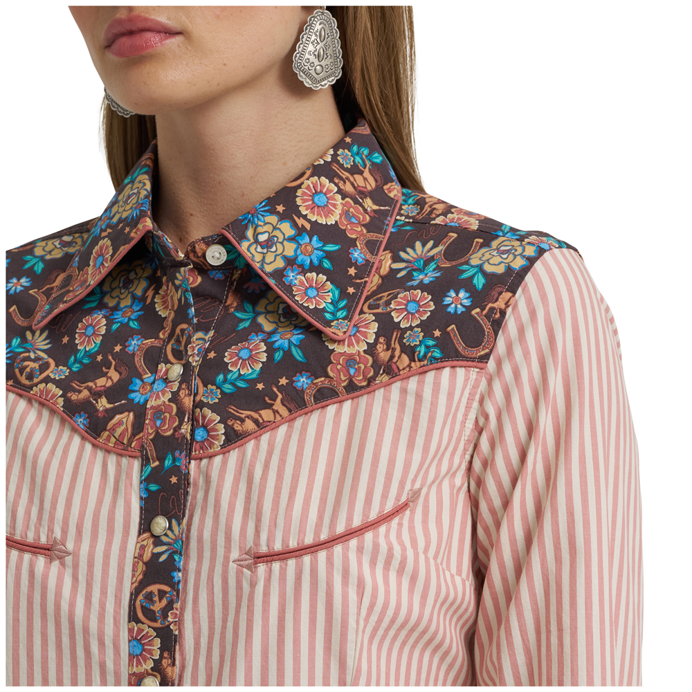 112375560 Wrangler X Lainey Wilson Women's Prairie Print Western Snap Shirt - White
