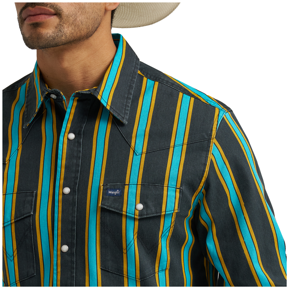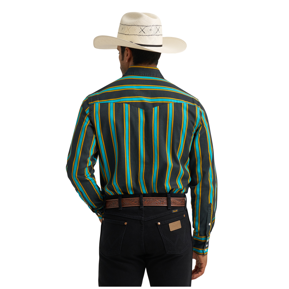 112375714 Wrangler Men's Vintage Inspired Classic Fit Long Sleeve Western Snap Shirt - Black Multi Stripe