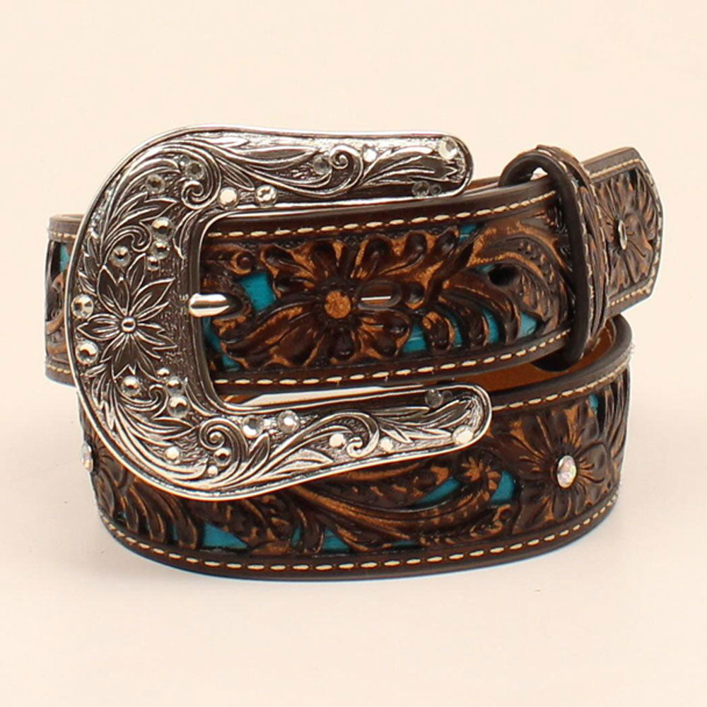 A1304027 Ariat Youth Western Belt with Turquoise Underlay