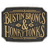 - The buckle features the words "Bustin' Broncs & Honky Tonks" in gold tone letters.