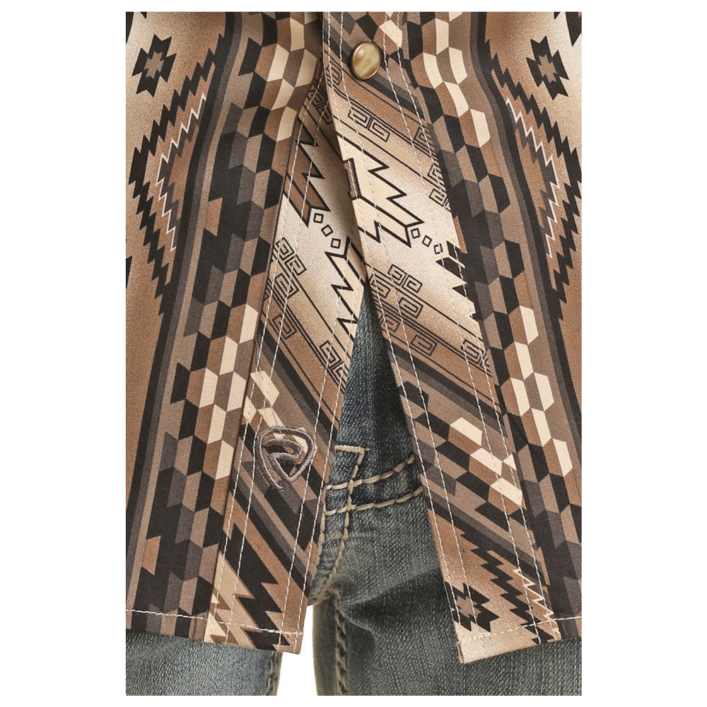 BMN2S03939 Rock & Roll Men's Long Sleeve Aztec Print Snap Shirts - Black & Tan