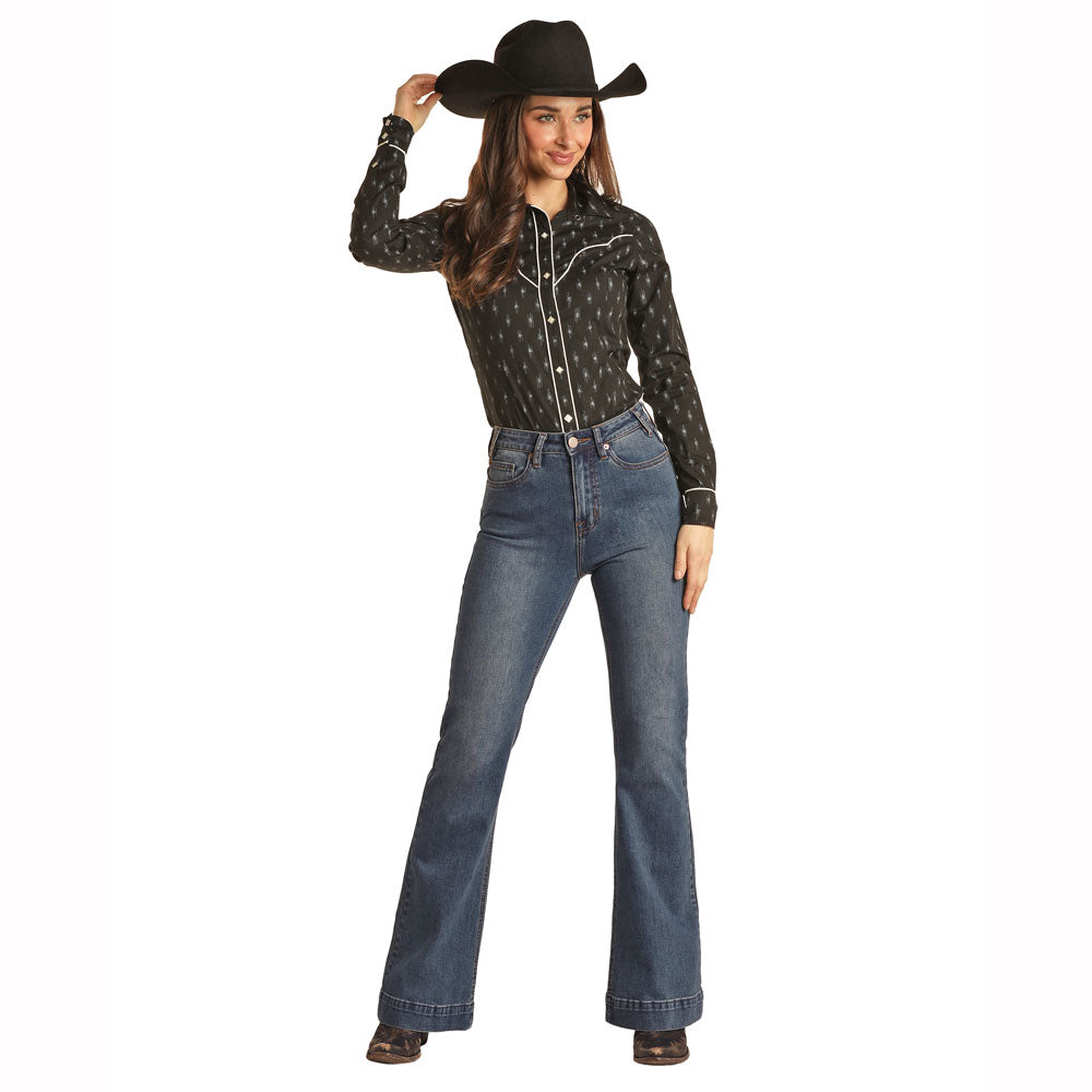 Rock & Roll Denim Women's High Rise Trouser Jean Medium Wash