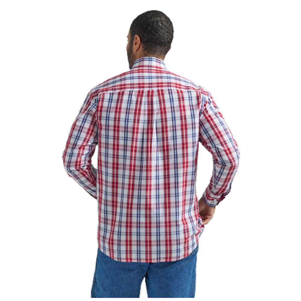 112324792 Wrangler Men's Relaxed Fit Button Down Long Sleeve Shirt- Blue Red Plaid