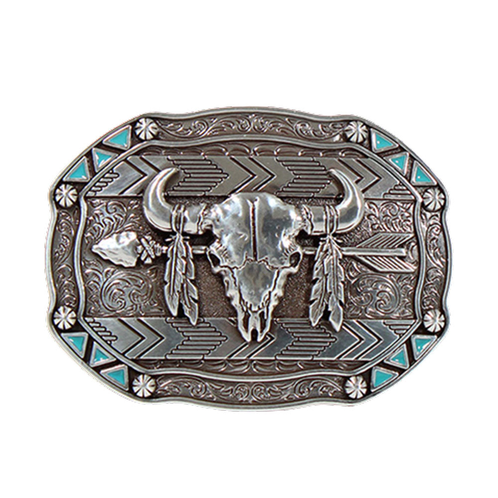 37007 Nocona Rectangle Arrow Skull Feather Belt Buckle