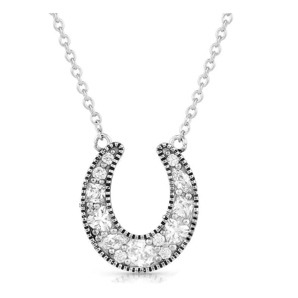 NC5350 Montana Silversmiths Intentional Luck Crystal Horseshoe Necklace