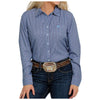 Cinch Women's ArenaFlex Long Sleeve Button Down Shirt - Light Blue and Purple Print