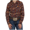 Cinch Women's Long Sleeve Button Down Shirt - Dark Purple and Burgundy Paisley