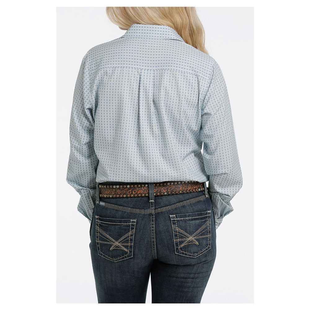 Cinch Women's ArenaFlex Long Sleeve Button Down Shirt - Light Blue Print
