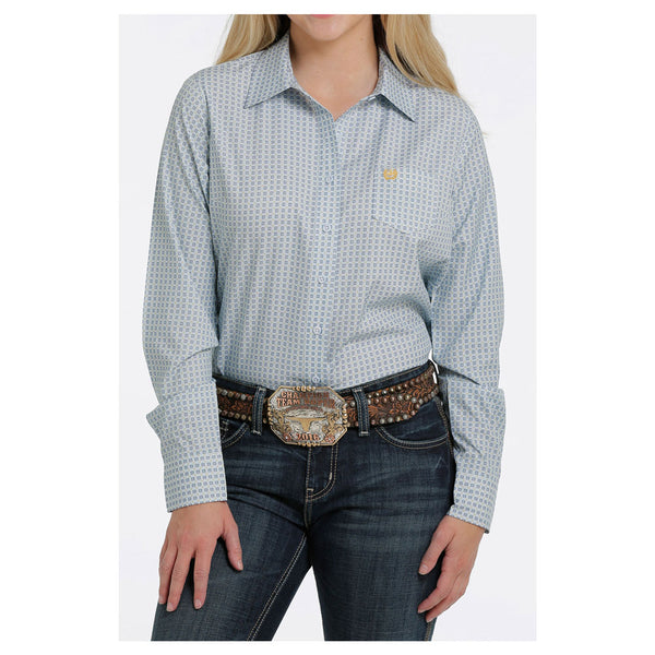 MSW9163004 Cinch Women's ArenaFlex Long Sleeve Button Down Shirt - Light Blue Print