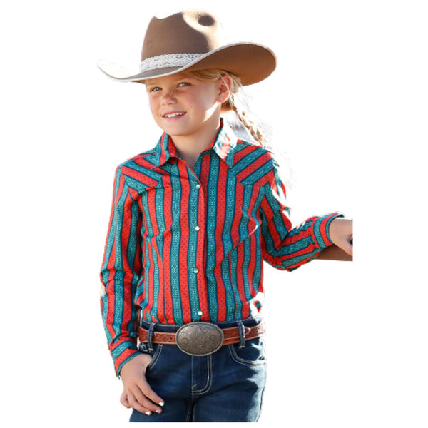CTW3220036 Cruel Girl Girls' Long Sleeve Western Snap Shirt - Multicolor Stripe
