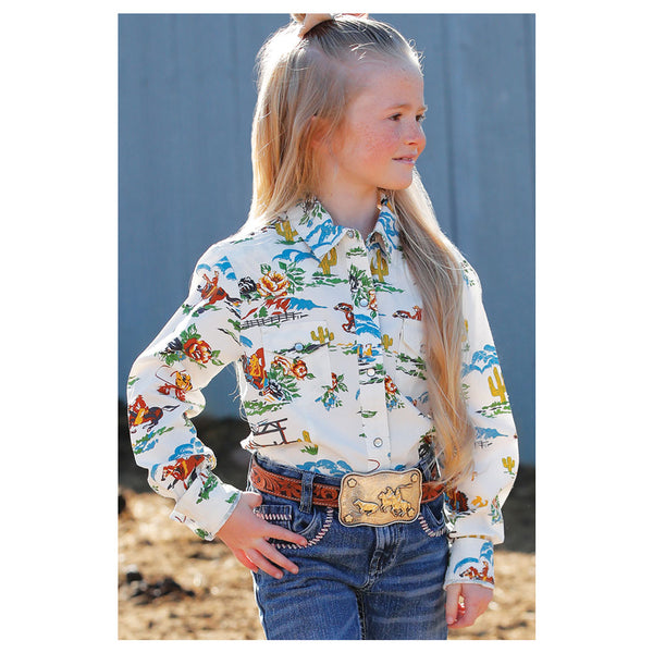 CTW3230048 Cruel Girl Girls' Long Sleeve Western Snap Shirt - Cream Print