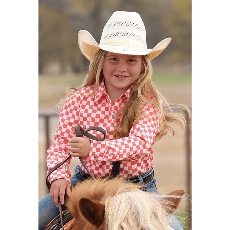 CTW3371001 Cruel Girl Girls' Long Sleeve Western Snap Shirt - Coral Checkered Print