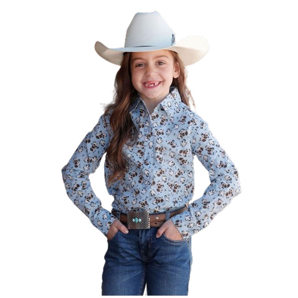 CTW3380002 Cruel Girl Girls' Long Sleeve Shirt - Light Blue with Cow Print