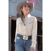 Cruel Girl Women's Long Sleeve Yellow Stripe Western Shirt