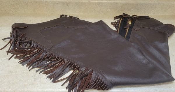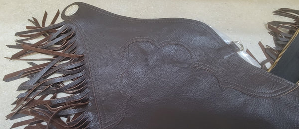 Custom Wire Horse Brown Smooth Leather Chaps with Fringe- Size XL Long