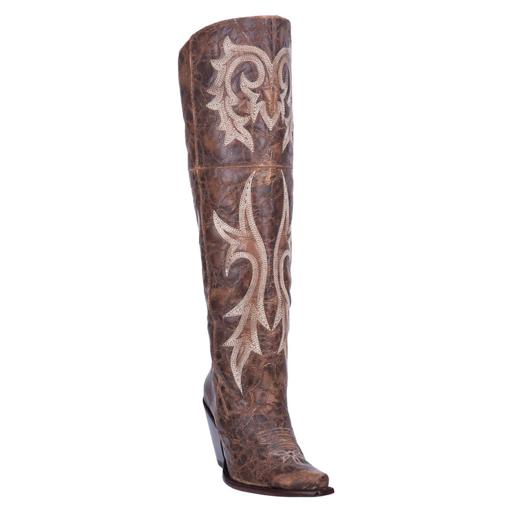 DP3709 Dan Post Jilted Ladies Western Tall Leather Snip Toe Boot- Distressed Brown