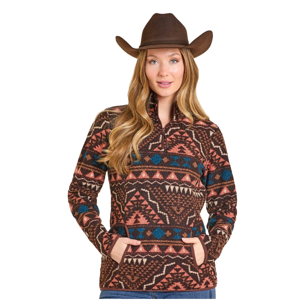 DW91C06864 Panhandle Slim Powder River Women's Aztec Berber 1/4 Zip Pullover - Chocolate