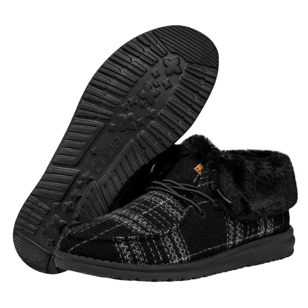 Hey Dude Wendy Fold Plaid Boot Cozy - Black Plaid
