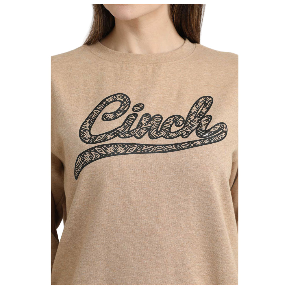 Cinch Women's Long Sleeve Logo Sweatshirt in Heather Brown
