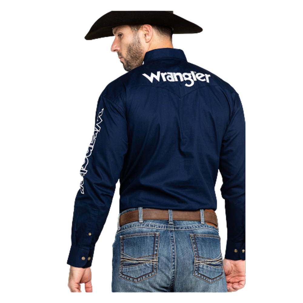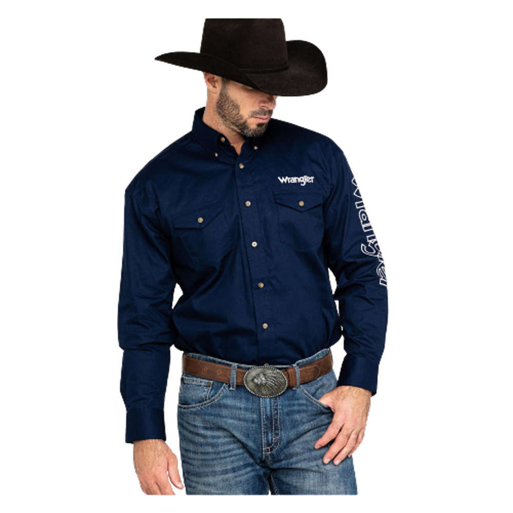 Wrangler Men's Logo Long Sleeve Shirt- Navy