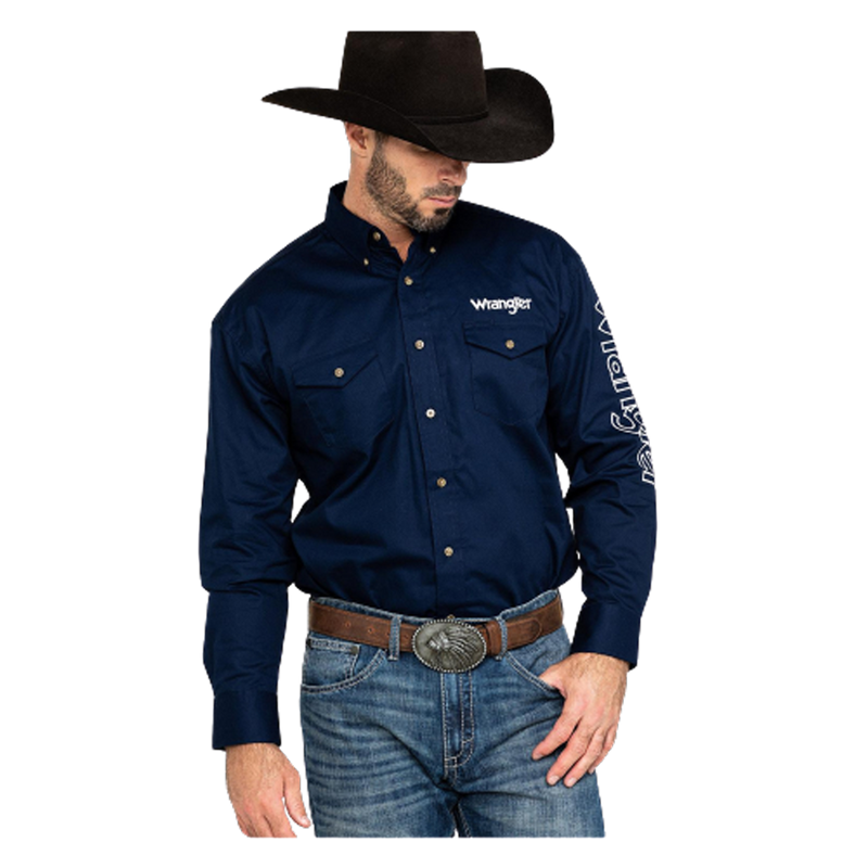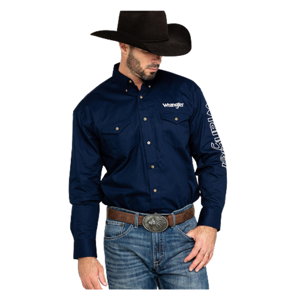 MP2327N Wrangler Men's Logo Long Sleeve Button Down Shirt - Navy