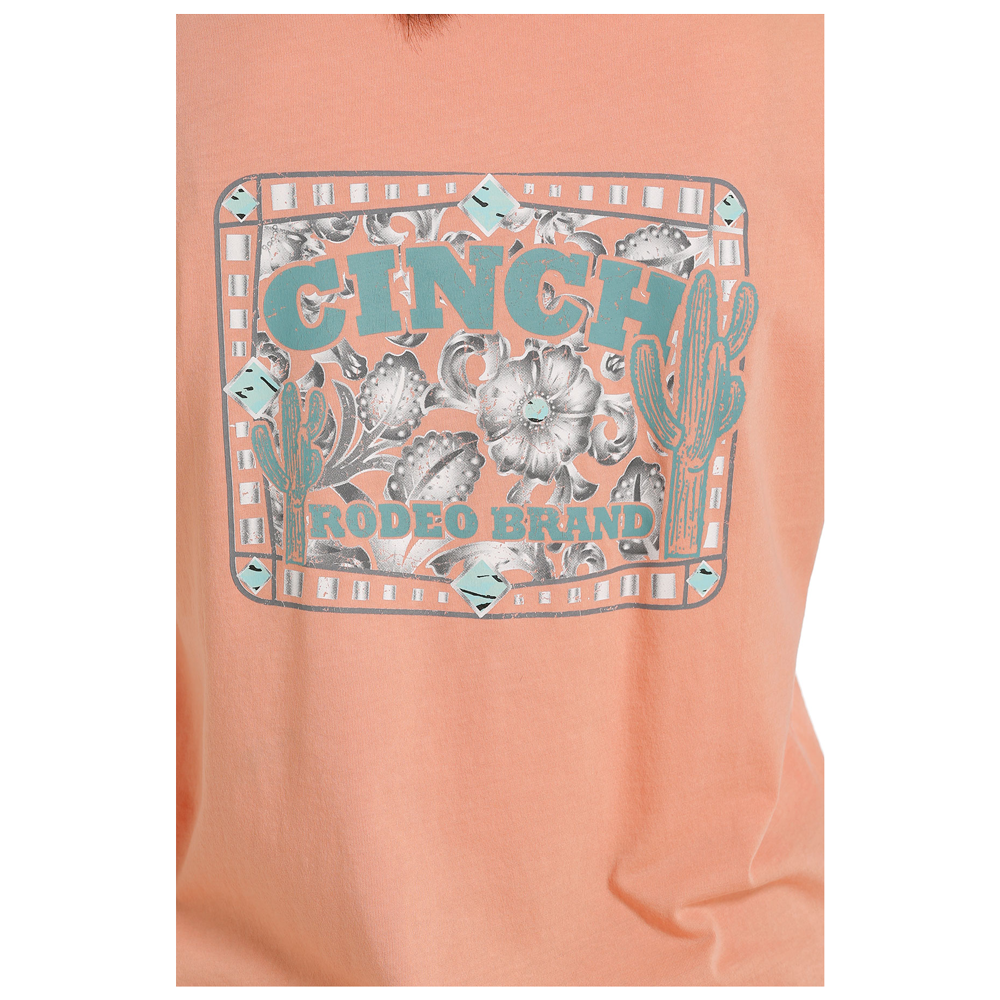 Cinch Women's Short Sleeve Rodeo Brand Tee in Coral