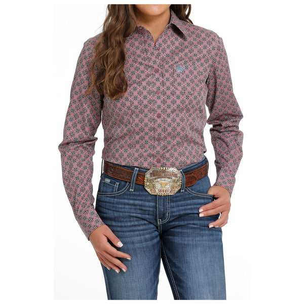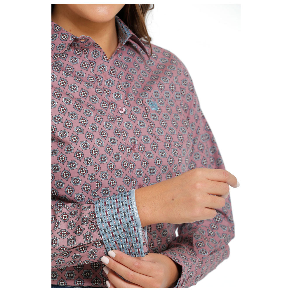 MSW9164206 Cinch Women's Long Sleeve Western Button Down Shirt - Pink Print