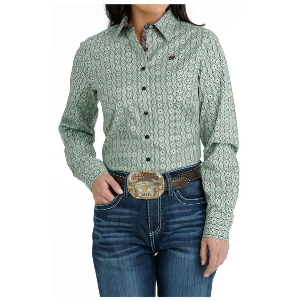 MSW9165043 Cinch Women's Long Sleeve Stripe Western Shirt - Green Print
